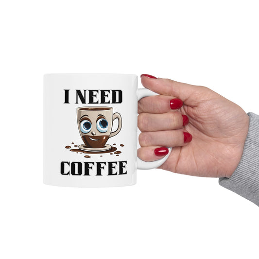 Coffee Mug - I Need Coffee Design, Ceramic Mug (11oz, 15oz)