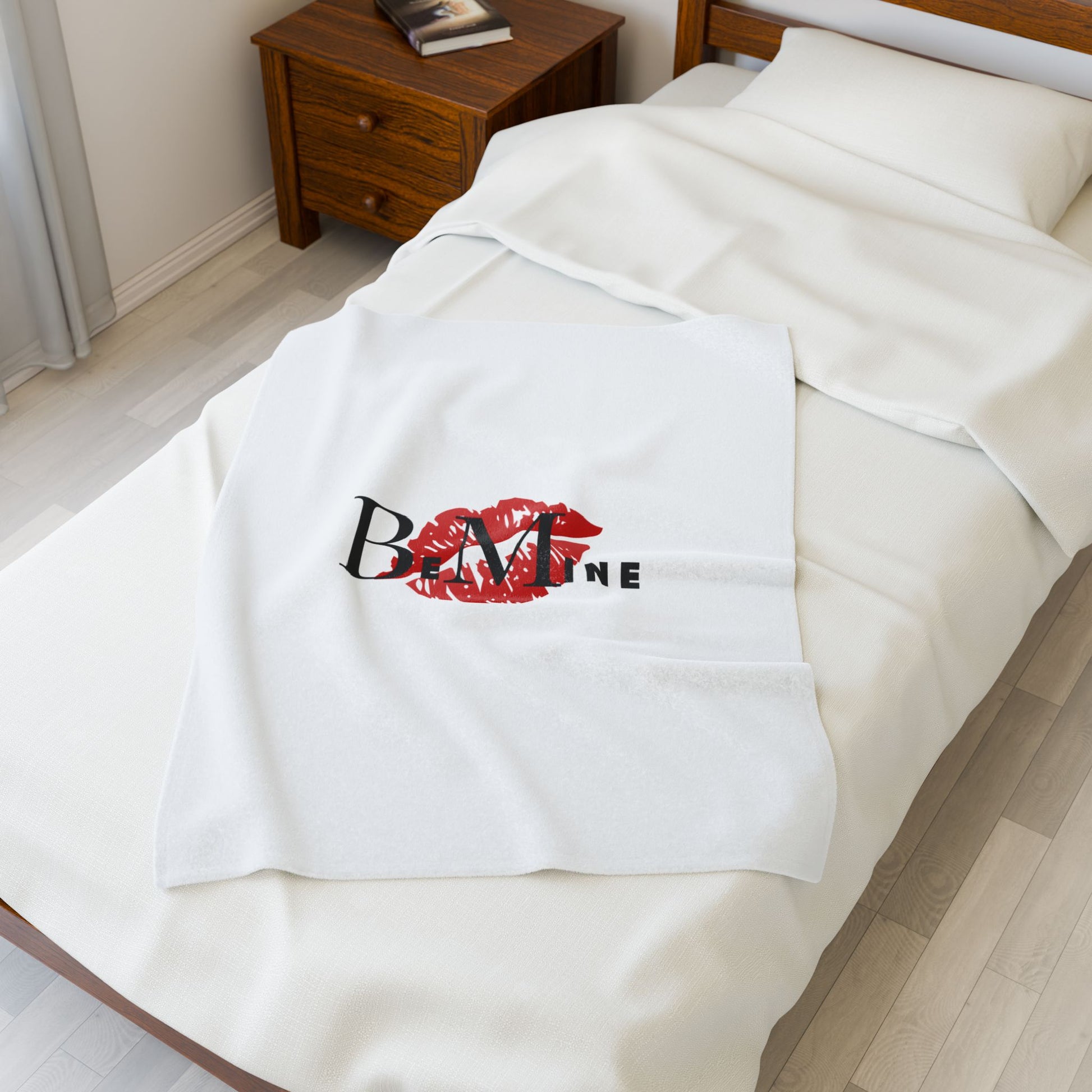 Valentine Be Mine Kiss Velveteen Plush Blanket