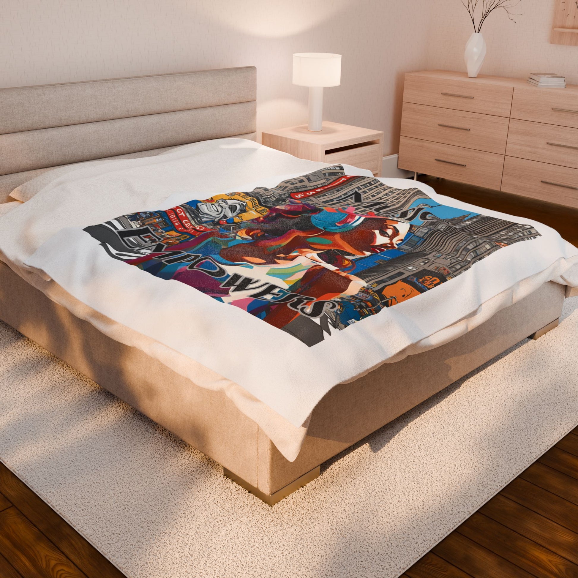 Velveteen Blanket — "Music Empowers" Colorful Urban Headphones Art